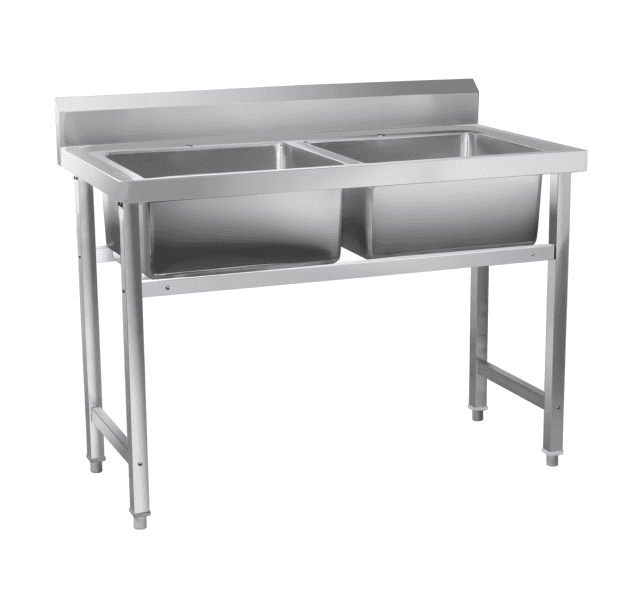 Streamline your dishwashing process and maximize kitchen efficiency with Shiva Kitchen's 2 Sink Unit. This essential piece of equipment provides two spacious sinks for washing, rinsing, and sanitizing, allowing your staff to work quickly and effectively.