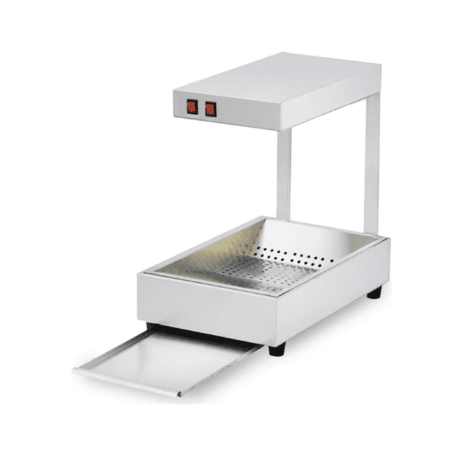 Our Chips Warmer keeps your French fries, onion rings, and other fried sides perfectly crisp and warm. This unit features efficient heating elements, adjustable temperature controls, and a compact design to maintain optimal food temperatures while saving valuable counter space. Ideal for restaurants, fast-food chains, and any establishment serving fried sides, our Chips Warmer ensures customer satisfaction with consistently delicious and warm food.